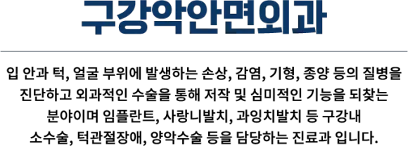입 안과 턱, 얼굴 부위에 발생하는 손상, 감염, 기형, 종양 등의 질병을 진단하고