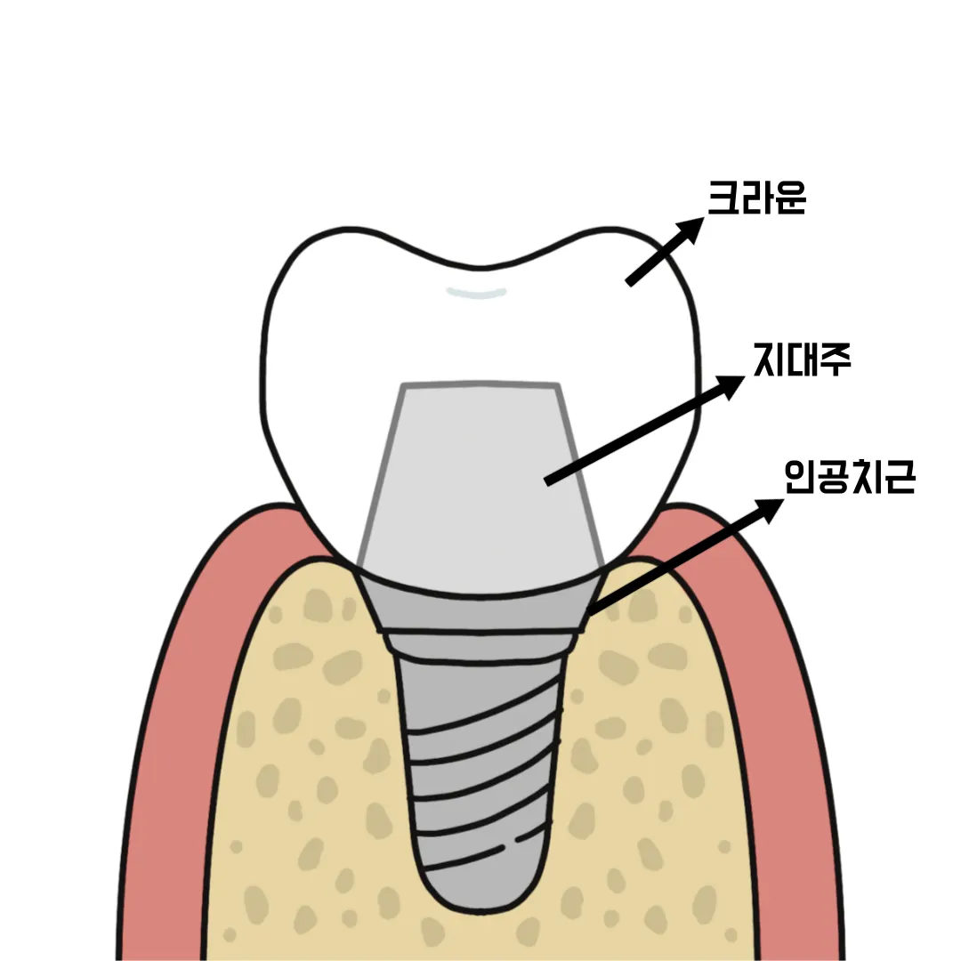 자연치아에 있는 치수나 치주인대가 임플란트에는 없습니다.