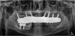 임플란트에 의한 재건을 원하셨으나, 골흡수가 심하고 하악구치부는 식립이 불가능하였습니다.
