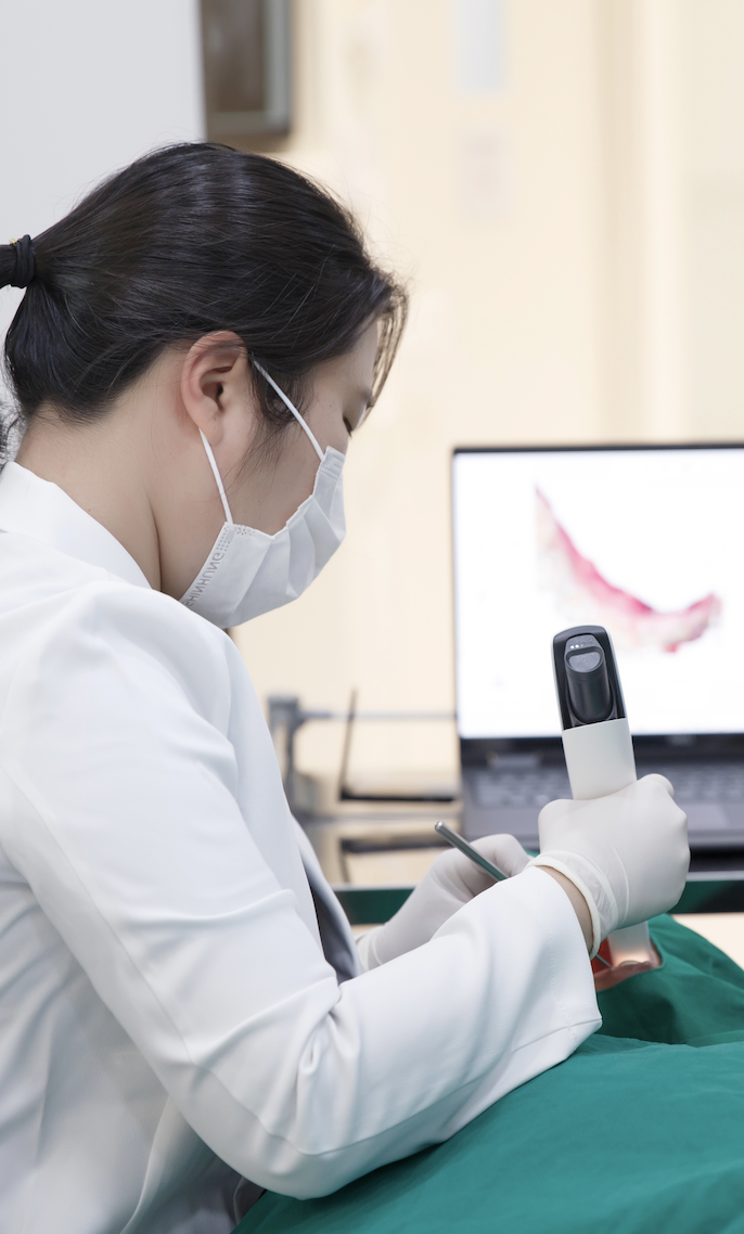 시술 전 3D 모의시술을 통해 환자의 골조직과 신경 위치 등을 파악하여 최상의 치료계획을 수립하고 개별 맞춤 임플란트를 진행합니다.