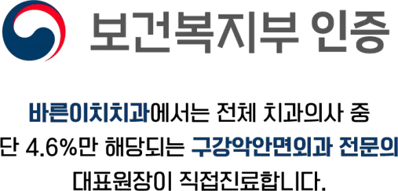 바른이치 치과는 15년 경력의 구강악안면외과 전문의 대표원장이